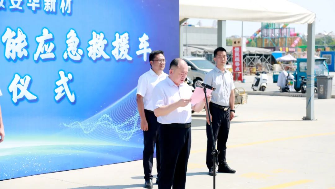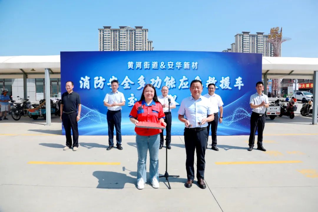 交付仪式上,宿迁经济技术开发区黄河街道党工委副书记、办事处主任李崇高,党工委委员、人武部长龚守宽,办事处副主任张贺,安华新材公司闫总、吴总以及街道各社区党委书记、安全生产工作人员出席仪式。